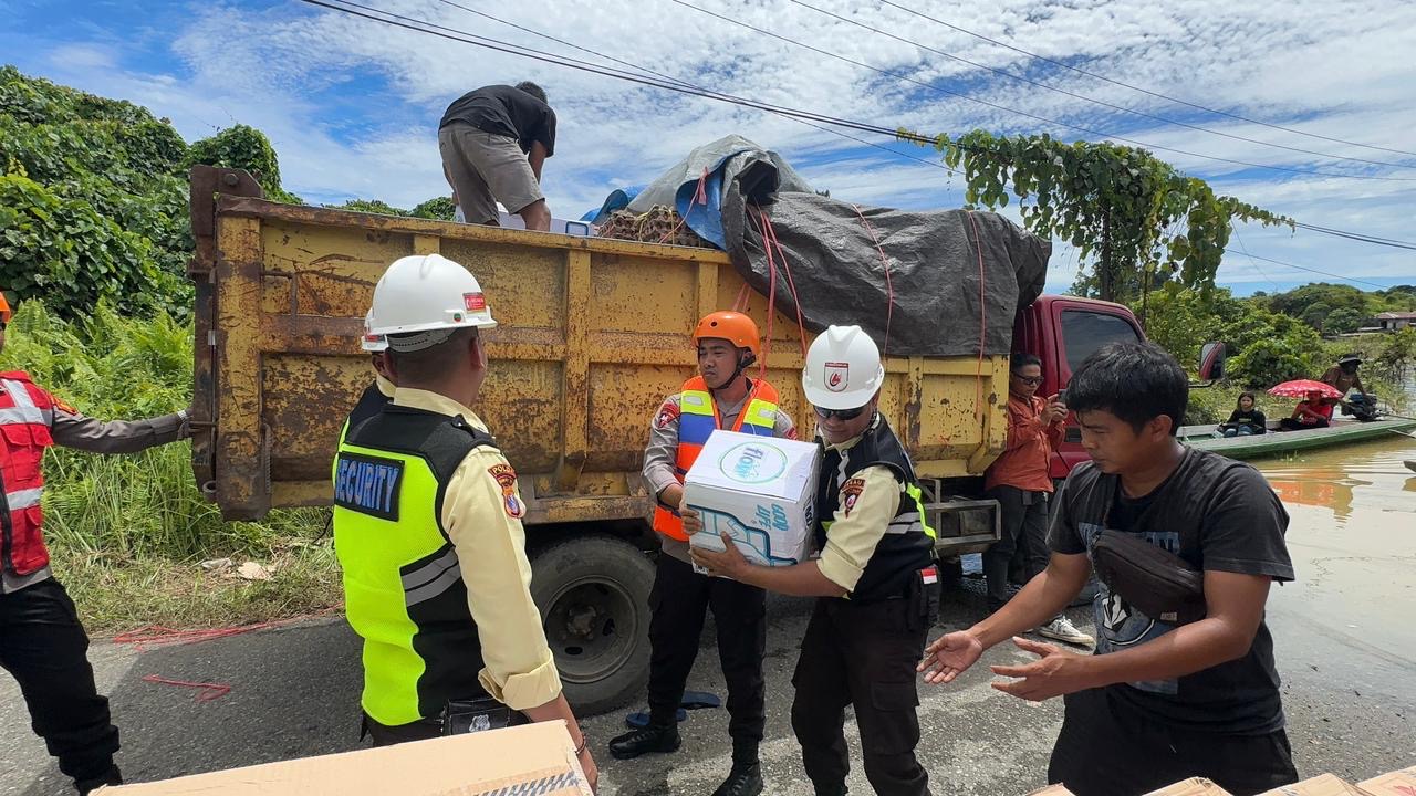 Brimob Polda Kaltim Evakuasi Warga Terdampak Banjir di Tujuh Desa Kabupaten Berau