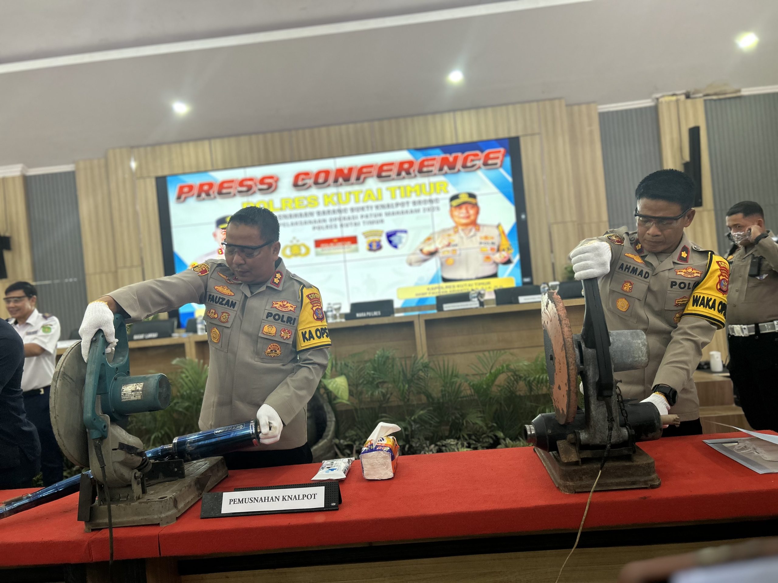 “Ini bentuk komitmen kami, kita perang lawan knalpot brong. Jangan harap bisa lolos,” tegasnya saat konferensi pers pemusnahan barang bukti.